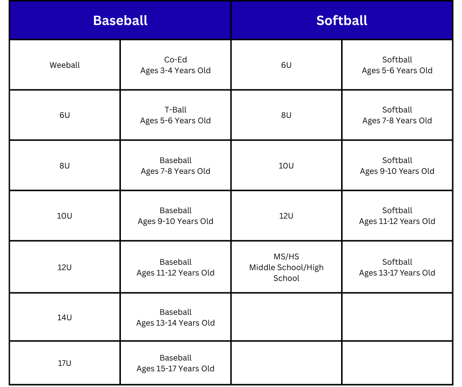 Visit the USSSA Age Calculator here to input your child's DOB and receive confirmation on the age appropriate program for him/her.